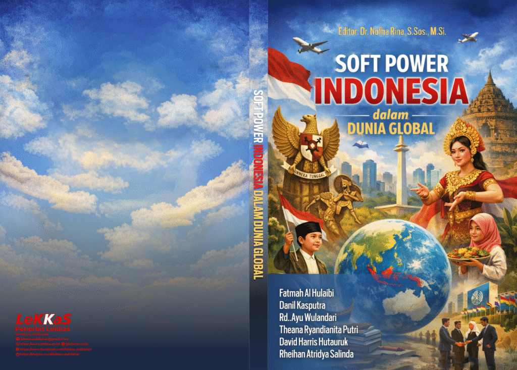Judul : Soft power Indonesia dalam Dunia Global Penulis :  Fatmah Al Hulaibi Danil Kasputra Rd. Ayu Wulandari Theana Ryandianita Putri David Harris Hutauruk Rheihan Atridya Salinda Sinopsis : Buku bunga rampai ini memuat tulisan-tulisan yang membahas soft power Indonesia dari beragam sudut pandang, mulai dari strategi negara melalui program pariwisata dan nation branding, peran kreator